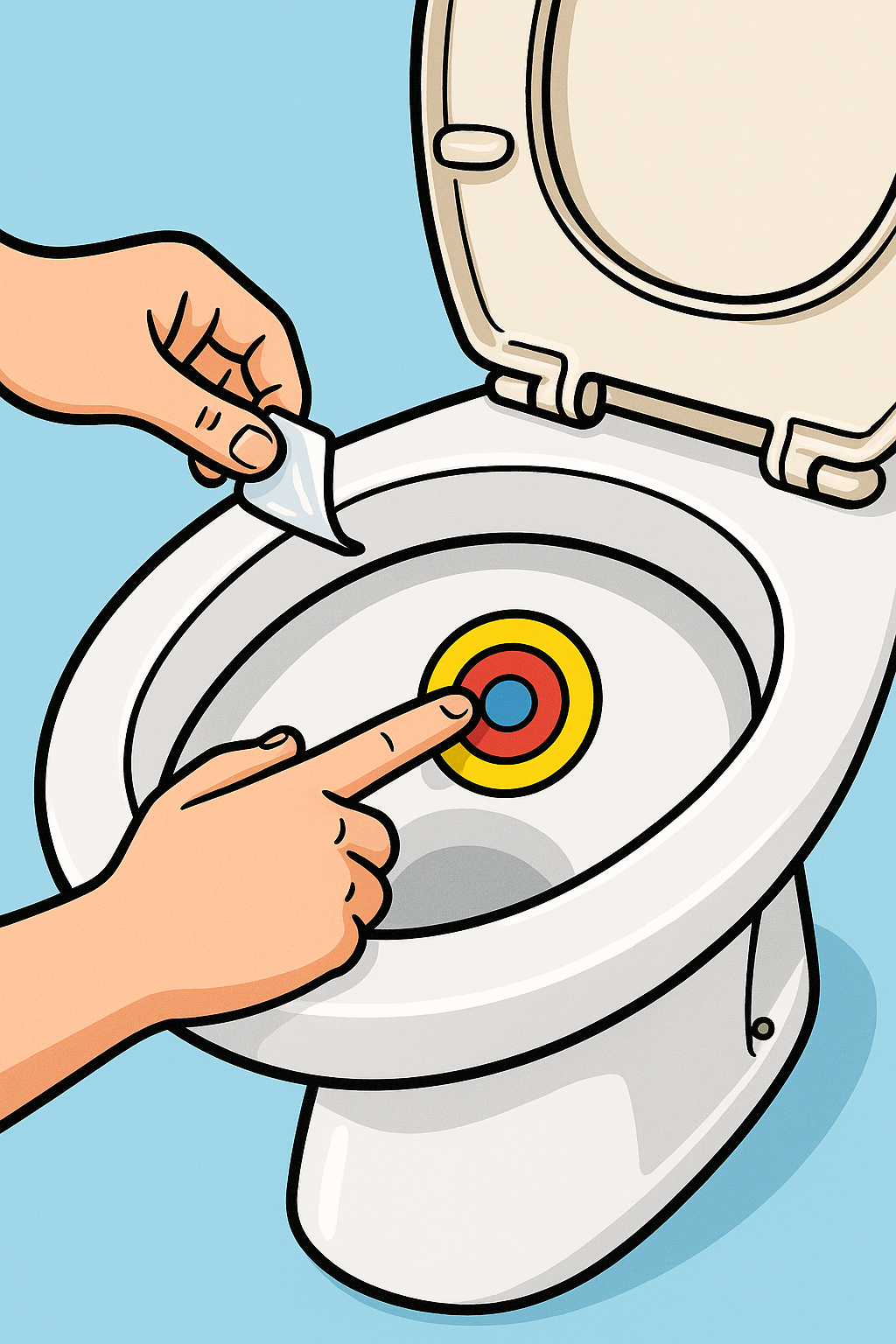 Positioniere den STICKIE an der gewünschten Stelle im WC (z. B. Mitte des Beckens oder etwas tiefer als Zielpunkt).